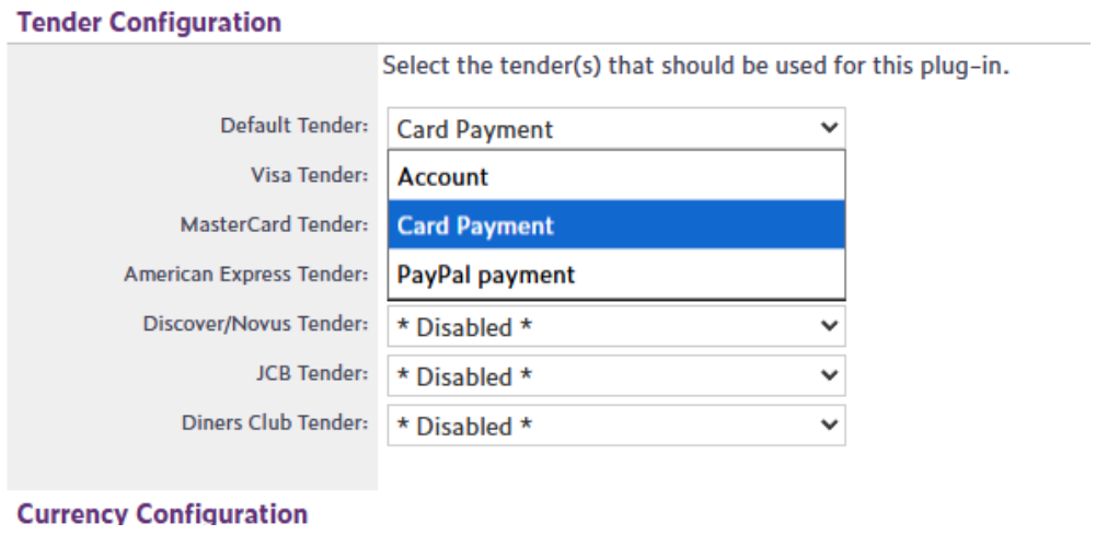 - Choose the tender(s) that should be used for this payment plug-in, and click Save Changes at the bottom of the page.