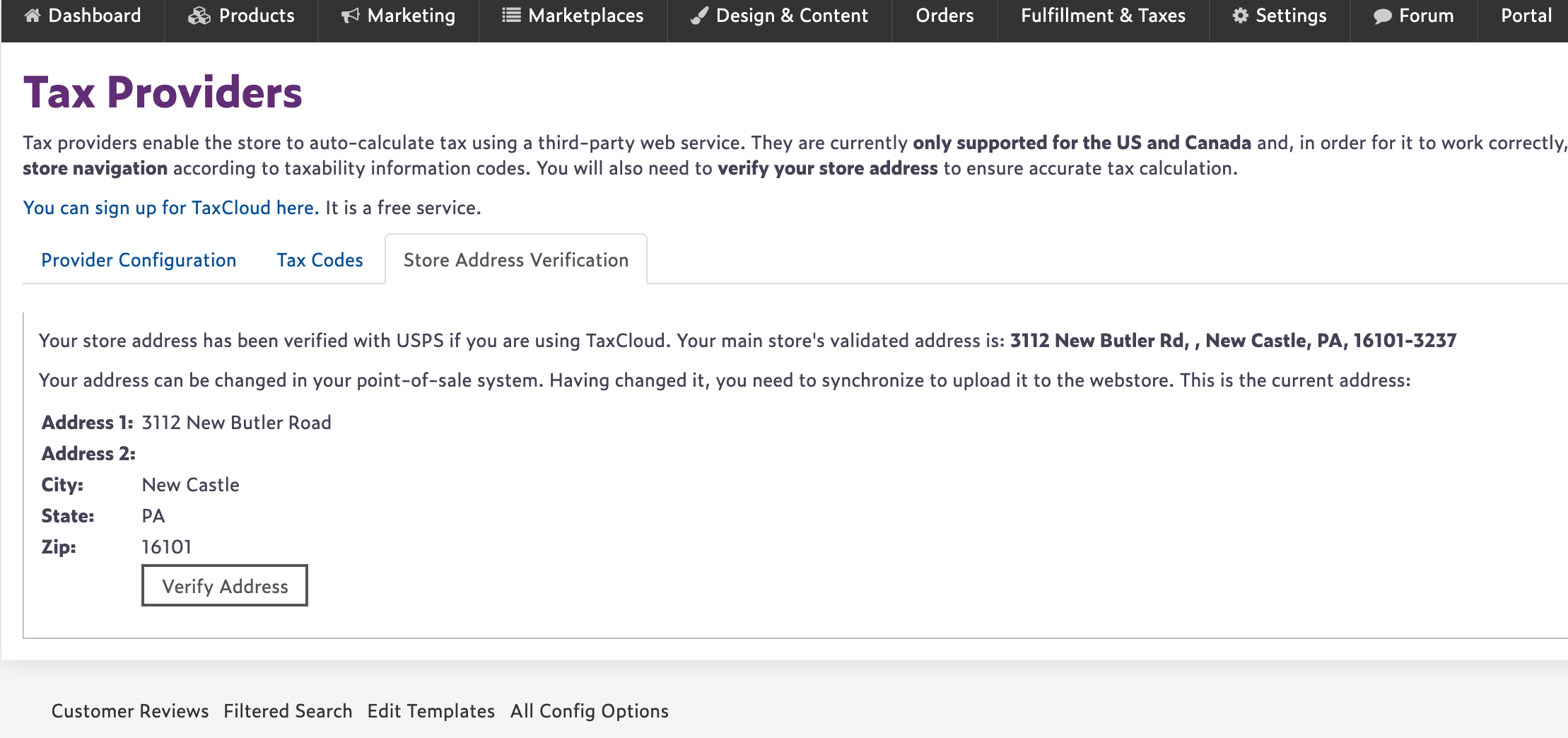 4. You must also verify your store’s mailing address with the US Postal Service. To do so, click on the Store Address Verification tab and click Verify Address.