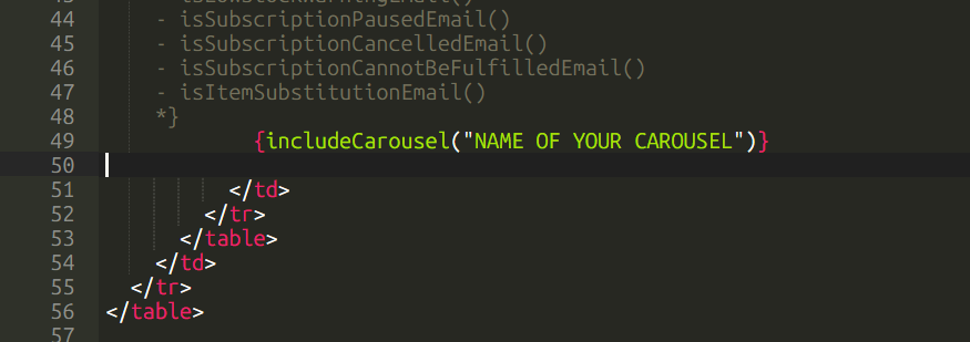 If you wish for the carousel to only be available in SOME of the emails, place the include code at the END of that email template.